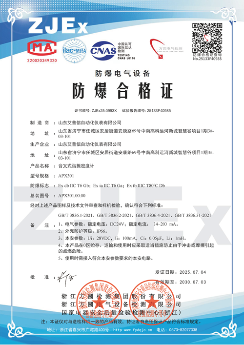 選用產(chǎn)品APX301音叉密度計